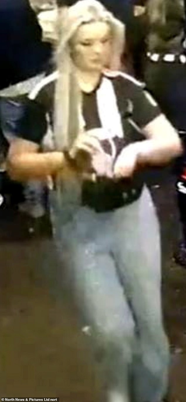 A polícia está caçando uma mulher loira em uma camisa de futebol de Newcastle depois de um homem morder a orelha depois da cabeça de um homem e vence a Copa de Karaba.