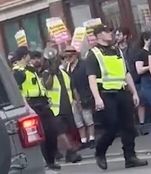 Três prisões foram feitas nos protestos de quinta -feira, que começaram pacificamente antes de pular em direção à violência, uma van da polícia viu um manifestante dirigindo um carro que parecia estar obstruindo seu caminho.