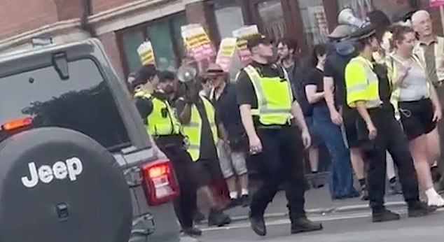 Os policiais separaram os manifestantes de ‘anti -racismo’ de outras pessoas que protestam no local
