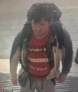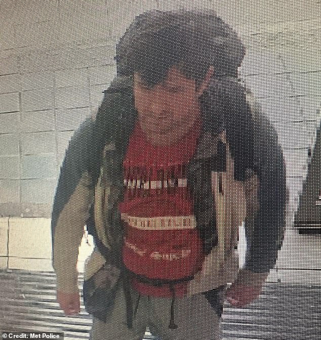 Ele foi visto no CCTV em uma loja na Kilburn High Road naquele dia, enquanto carregava o Racksak que ele havia comprado mais cedo usando um tampo cinza e uma camiseta vermelha por volta das 19h30.