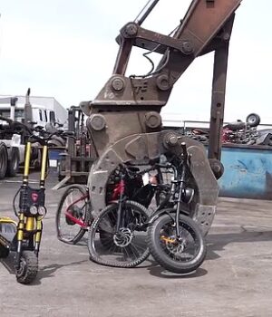 A polícia da Austrália Ocidental compartilhou imagens de adolescentes esmagando bicicletas elétricas e scooters após confiscá-las.