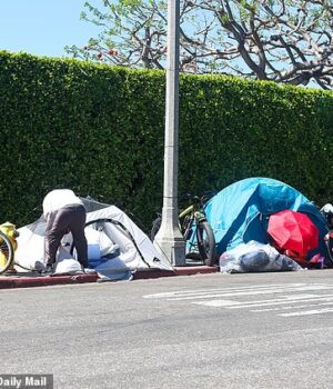 No mês passado, um fotógrafo do Daily Mail encontrou calçadas no famoso bairro de Venice Beach, na cidade, cobertas de acampamentos improvisados para moradores de rua. Moradores dizem que agulhas e lixo espalhado ao longo da estrada são uma ocorrência diária.