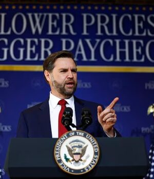 Quando JD Vance falou recentemente em Rocky Mount, na Carolina do Norte, fê-lo em frente a uma placa que dizia “Preços mais baixos, salários maiores”.