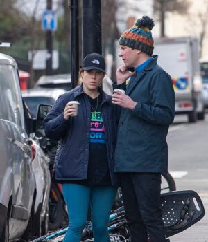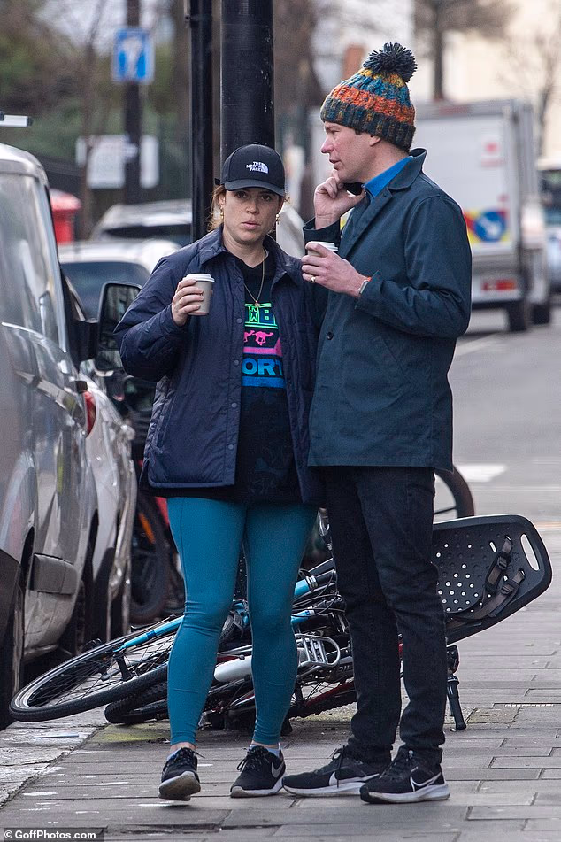 Eugenie foi vista ao lado do marido, que usava um chapéu colorido, enquanto ele falava ao telefone em uma rua em frente ao Hagen Espresso Bar, em Notting Hill.