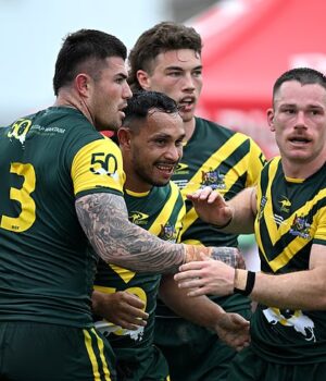 Uma criança foi atropelada por um veículo de segurança após vencer Papua Nova Guiné em Port Morsby, Port Morsbi, XII da Austrália (jogador australiano durante a partida)