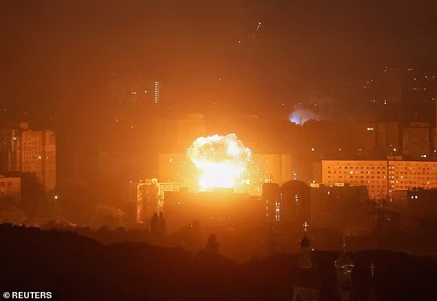 Uma explosão de drones foi vista na cidade durante uma greve de drones russos no ataque russo em 30 de julho de 2025 na Ucrânia