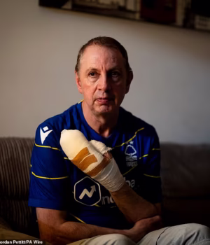 O torcedor de longa data do Nottingham Forest estava voltando de um empate em 2 a 2 com o Manchester United quando ouviu os gritos de passageiros feridos antes de enfrentar o atacante.
