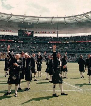 Os kilts foram usados por jogadores franceses em 1998, sob o comando do falecido Craig Brown, que pessoalmente insistiu em usá-los para intimidar os adversários.