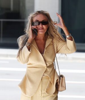 Vestida com uma jaqueta de linho amarelo claro e calças de crepe com sapatos de salto agulha combinando, seus cabelos longos e louros caindo sobre os ombros, Jacobs Fennell estava deslumbrante ao sair da quadra do Downing Center na tarde de segunda-feira.