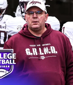 O técnico do Texas A&M Aggies, Mike Elko, está pronto para liderar seu time em campo. Foto de Scott Winters/ICON Sportswear via Getty Images