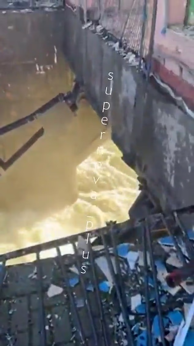 Imagens mostram água jorrando do reservatório danificado