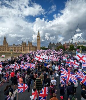 Acredita -se que os maiores protestos de direita na história britânica fossem cerca de 5,7 – 5,3 manifestantes no centro de Londres no sábado.