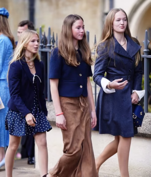 Peter Phillips compareceu ao culto de Páscoa da semana passada com sua noiva Harriet Sperling e sua filha de 13 anos, Georgina (na foto estão suas futuras meias-irmãs Isla, à esquerda, e Savannah, à direita).