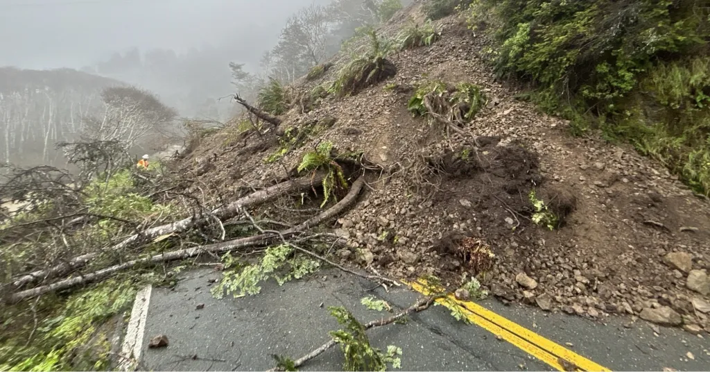 O deslizamento de terra foi relatado por volta das 7h de quarta-feira, perto da cidade de Elk, cerca de 29 quilômetros ao norte de Point Arena. Seguiu-se uma série de tempestades que encharcaram a costa da Califórnia.