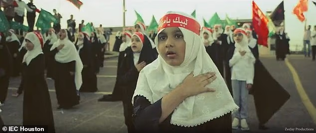 As imagens mostraram dezenas de crianças dentro do complexo de Houston agitando bandeiras verdes e usando faixas vermelhas no estilo dos mártires enquanto cantavam e cantavam louvores à liderança do Irão – incluindo Ali Khamenei e aqueles ligados ao poderoso Corpo da Guarda Revolucionária Islâmica.