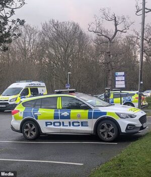 Uma declaração de Surrey e Sussex disse: ‘Há um cordão policial ao redor da floresta conhecido como Peacock Wood e Wild Wood Adventure e no final do estacionamento na Lido Road.