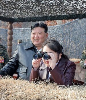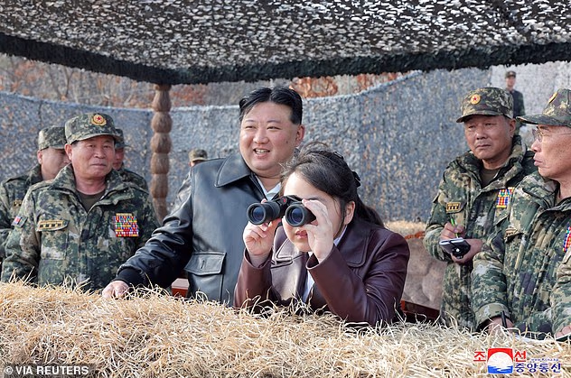 Kim Jong Un e sua filha Ju A inspecionam o teste de tiro do novo ICBM Hwasongpho-18 em 2023