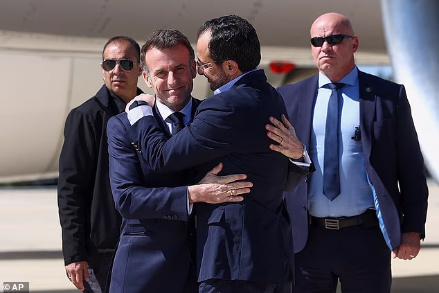 Saudações: Senhor Macron e o líder cipriota Nicos Christodoulides em demonstração de poder diplomático
