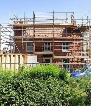 Conhecida pelos habitantes locais como ‘Casa de Andaime’ em Shipdham, Norfolk, a propriedade tem sido cercada por materiais de construção e detritos nos últimos cinco anos.