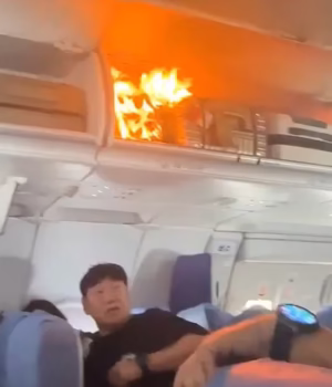 Uma explosão no compartimento de bagagem de um avião de passageiros chinês causou pânico no incêndio