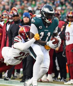 A Philadelphia Wide Receiver AJ Brown mostrou uma resposta sorridente para executar uma montanha -russa em um passeio familiar