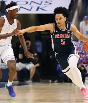 O número 1 do Arizona abriu uma vantagem de 44-31 no intervalo sobre o número 13 da BYU e o fenômeno do calouro AJ Dybantsa, depois sobreviveu a um rali furioso da BYU no segundo tempo que foi alimentado por uma falta flagrante de Brayden Burris no final do jogo que permitiu à BYU cair por 9-38 em uma corrida de 19 pontos no segundo tempo.