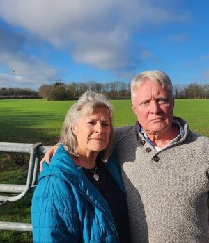 Andy e Gilly Morris (na foto) temem que sua ‘bela vista para o campo’ seja ‘total e completamente cercada’ por painéis solares