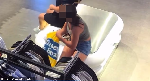 O proprietário da Sneaker Hut, Ali Mansoor, compartilhou imagens de CCTV de uma jovem roubando na filial de sua loja de calçados no sul de Sydney no domingo.
