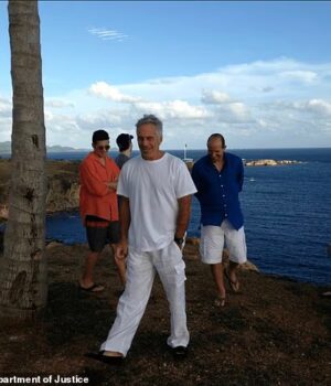 Uma foto mostra Epstein em uma ilha tropical ao lado de um homem parecido com o secretário de Comércio, Howard Lutnick.