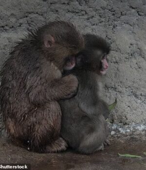 Mas imagens recentes mostram Punch finalmente se integrando a outros macacos ao ser visto abraçado com outro macaco.