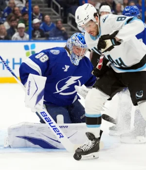 Vasilevskiy, que lidera o campeonato em média de gols sofridos, melhorou para 2 a 0 a 0 contra os Mammoths, ambos eliminados. Ele os eliminou na temporada passada, a campanha inaugural da franquia de Utah.