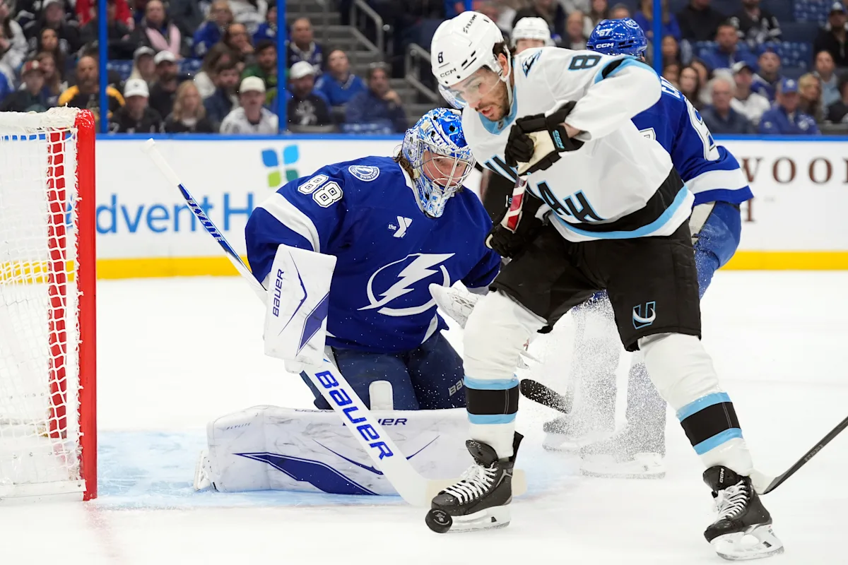 Brandon Hagel marcou um gol de power play no minuto final para o Lightning, que venceu 15 de 17 e venceu a série da temporada contra o Utah. Tampa Bay passou para o topo da classificação da Conferência Leste com 70 pontos, um à frente de Carolina e Detroit.