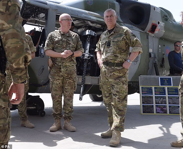 Andrew Mountbatten-Windsor é retratado aqui durante uma visita ao Joint Aviation Group Afeganistão em Camp Bastion em julho de 2013.