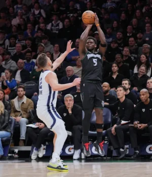 Minnesota aumentou sua intensidade defensiva e empatou em 72 no terceiro quarto. Edwards converteu uma bandeja para colocar os Wolves no topo por 74-72, e Minnesota nunca perdeu.