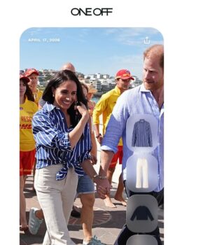 Todas as roupas de Meghan na turnê australiana continuam a ser carregadas no OneOff quase imediatamente, incluindo a que ela usou em Bondi na manhã de sexta-feira.