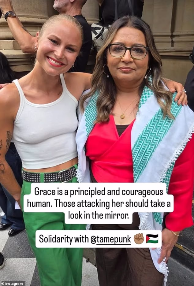 A ex-Australiana do Ano, Grace Tame, estava numa varanda em Sydney e liderou uma multidão que gritava “intifada global” antes de afirmar “Eu não sou a história”.