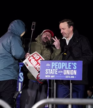 Os principais democratas reuniram-se no National Mall, em Washington, D.C., com norte-americanos a lutar com as vítimas de Jeffrey Epstein, famílias afetadas pela repressão à imigração, trabalhadores de saúde pública despedidos e custos crescentes, enquanto Trump discursava numa câmara conjunta do Congresso.