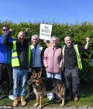 Marilyn Holley, 73 anos, membro do comité da associação de residentes que organizou o protesto, disse: “Estamos um pouco emocionados, mas sabemos que isso não os impedirá de descer a sebe, esse é o problema.