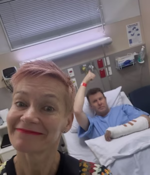 Jessica Roe (à esquerda) conta que Peter Overton (à direita) passou por uma cirurgia após uma queda