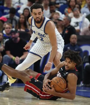 Orlando Forward Tristan the Silva (25) marca ao lado do Miami Guard Zaim Jaim Jakge Jr.