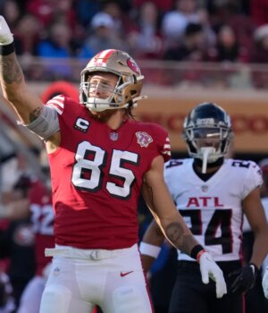 Kittle, no entanto, pegou todos os seis passes direcionados a ele para 93 jardas na vitória em casa por 31-13 sobre os Falcons em 2021, enquanto os 49ers também usaram seus retrocessos vermelhos e brancos de 1994.