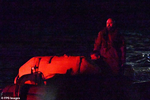 O SC50 alemão foi colocado em um pequeno barco RIB com flutuador e levado para o meio do oceano