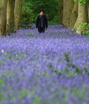 As campânulas da Grã-Bretanha floresceram de forma incomum no início deste ano, impulsionadas por uma primavera chuvosa e condições amenas. Imagem: Campânulas em flor no Chalet Wood, na Floresta Wanstead, em Londres