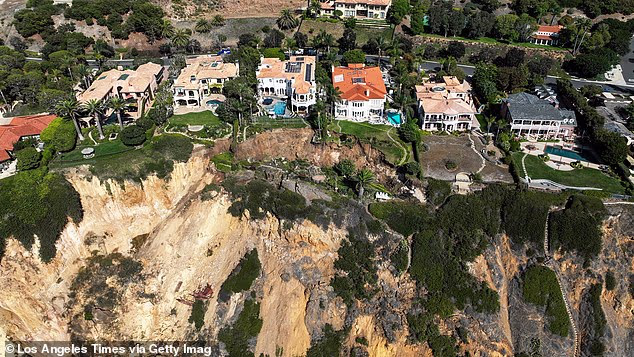 Os penhascos caíram de 50 a 60 pés em direção ao mar, alguém não foi convidado a mudar suas casas e nenhuma casa foi ameaçada, disseram autoridades