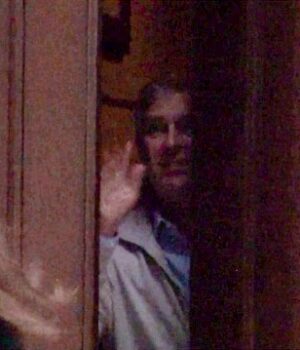 O ex-príncipe Andrew Mountbatten-Windsor fotografado na porta da casa de Epstein em Nova York, acenando para Catherine Keating, filha do ex-primeiro-ministro australiano