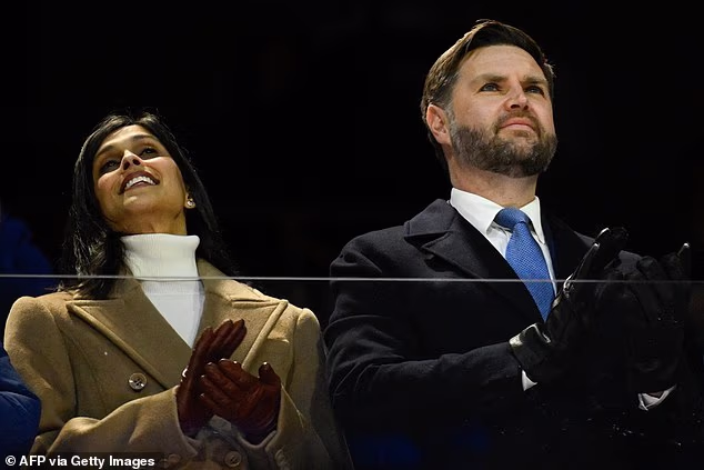 O vice-presidente dos EUA, JD Vance, que agraciou a ocasião, e a segunda-dama Usha Vance