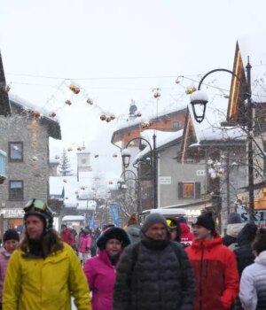 No centro histórico de Bormio, as ruas de paralelepípedos encheram-se de fãs durante o programa de corridas de esqui alpino masculino e as suas lojas tiveram muita atividade.