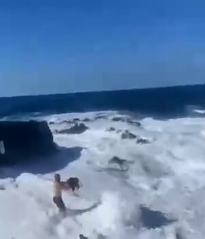 É um momento horrível que uma onda gigante tenha destruído vários turistas numa praia de Tenniff.