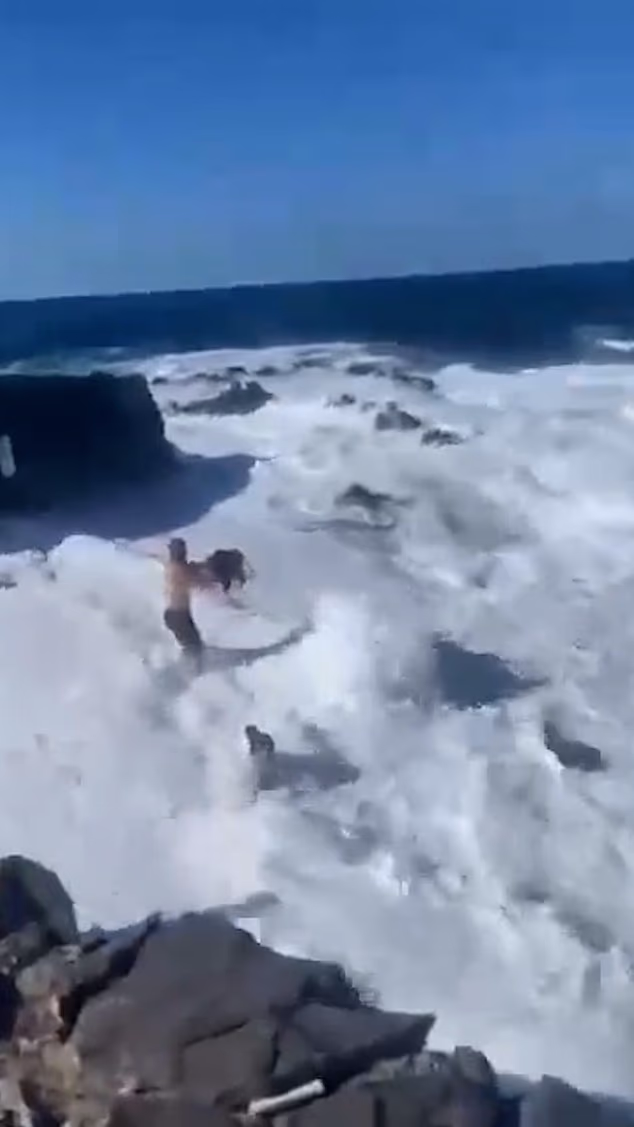 Imagens de vídeo mostraram que a água foi empurrada para longe na lateral da costa