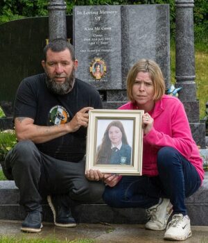 Frankie e Teresa McCann, cuja filha adolescente Kia e sua amiga Dlava Mohammed morreram quando foram atropeladas em um baile da escola em agosto de 2023